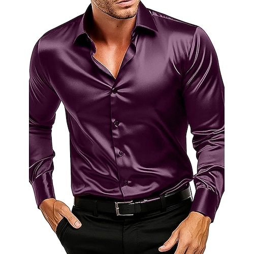 Per uomo Camicia Camicia in raso Camicia casual Camicia con Bottoni Semplice Matrimonio Vacanza Nero Bianco Vino Blu marino Manica Lunga Bavero Primavera Autunno Abbigliamento