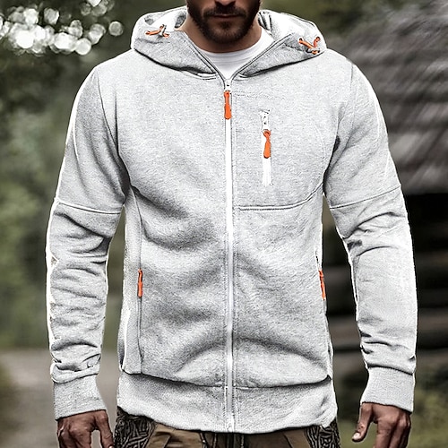 Per uomo Felpa con cappuccio Felpa con cappuccio a zip intera Nero Bianco Vino Verde militare Blu marino Con Cappuccio Semplice Cerniera Tasca Sport Outdoor Quotidiano Ferie Poliestere Streetwear