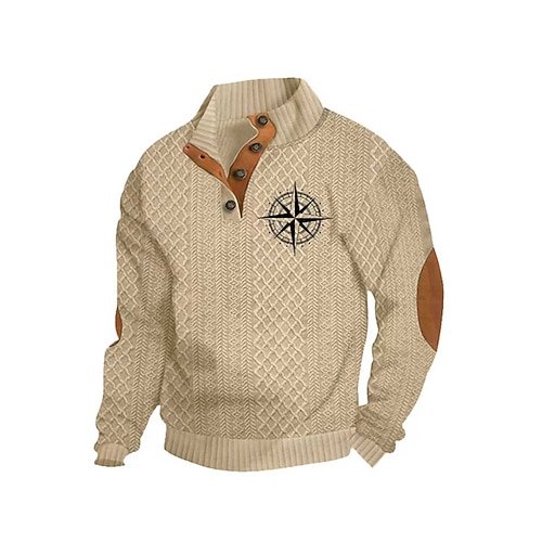 Per uomo Maglia Nero Bianco Vino Verde militare Blu marino Colletto Mao Jacquard Mappa Patchwork Quotidiano Ferie Uscire Poliestere Streetwear Casual Autunno Inverno Abbigliamento Felpe con cappuccio