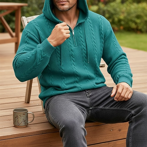 Per uomo Jacquard Felpa con cappuccio Felpa con cappuccio e zip corta Aalbicocca Nero Bianco Verde chiaro Vino Con Cappuccio Semplice Con zip Testurizzato Casuale Quotidiano Sport Outdoor