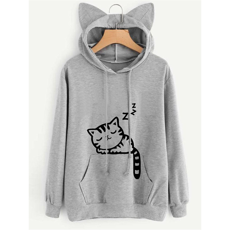 Women's Hoodie Sweatshirt Casual Cat Street Dailywear Hoodie Pocket Print Long Sleeve Black Pink Wine Gray Fall Winter