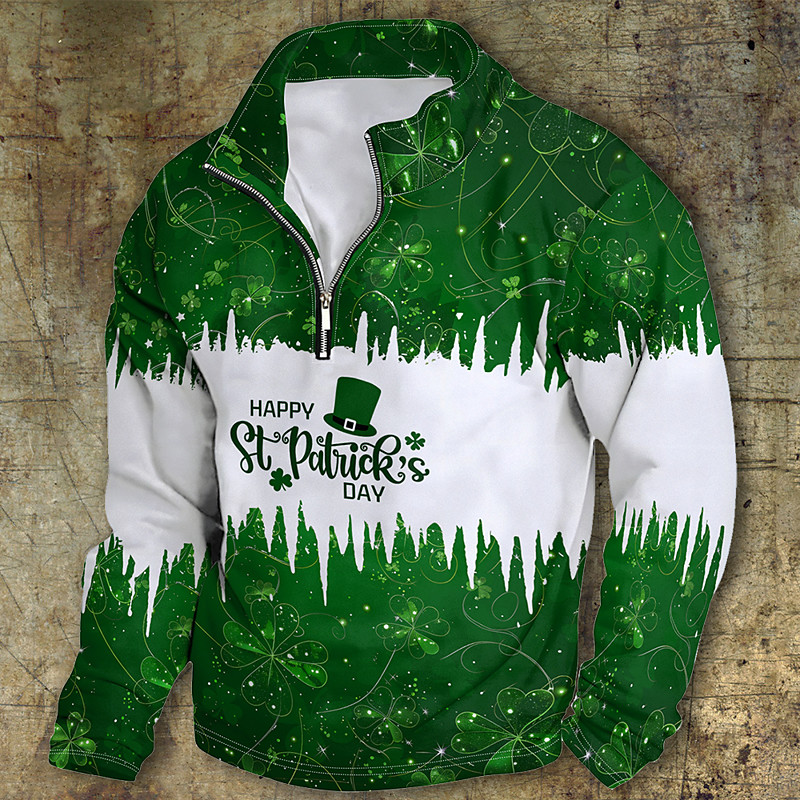 St. Patrick's Day Men's Graphic Saint Patrick Day Hoodies Quarter Zip Sweatshirt Hooded Sweatshirt Stand Collar Daily 3D Print Vacation Going out Streetwear Green Print Spring Fall Designer
