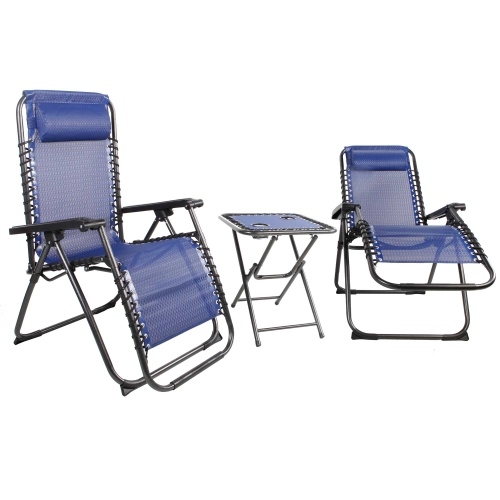 Lex 3 tlg. Relax Set Sessel m. Kopfkissen Tisch Gartenstuhl Gartenmöbel Liegesessel schwarz/blau : Schwarz/Blau