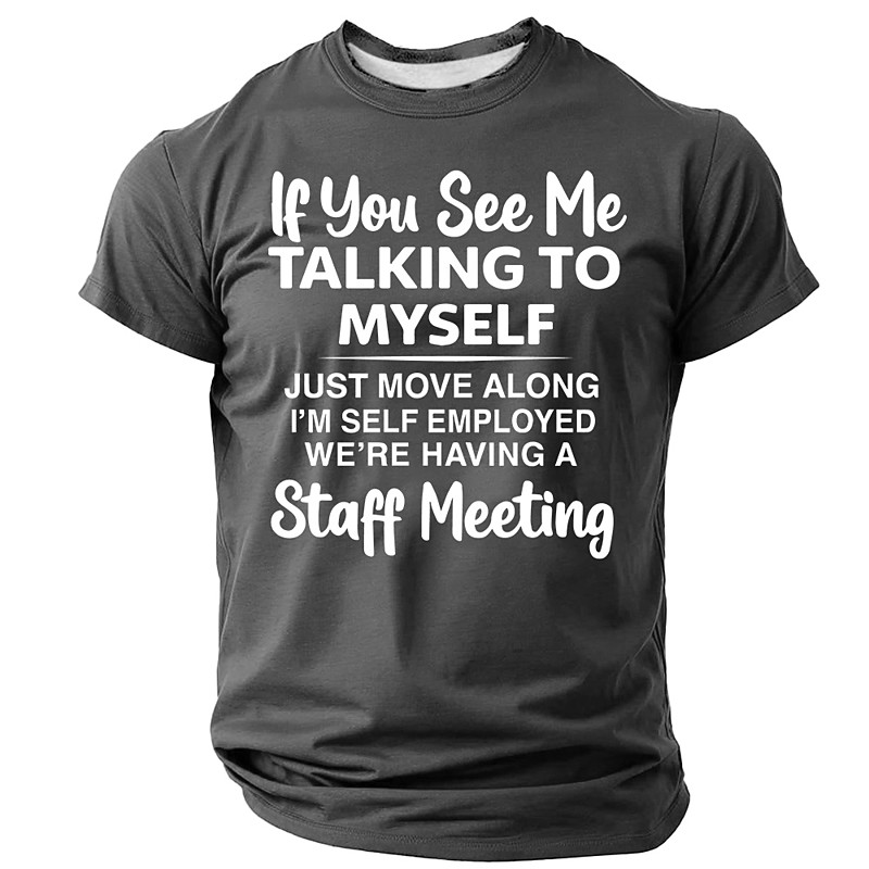Mens Graphic T-Shirt Funny Self Employed Staff Meeting Work Humor Short Sleeve Tee