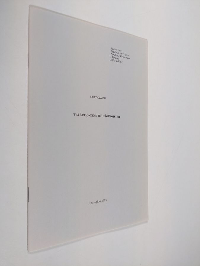 Curt Olsson : Två årtionden i HD. hågkomster (Särtryck ur Tidskrift, utgiven av Juridiska Föreningen i Finland häfte 4/1993)