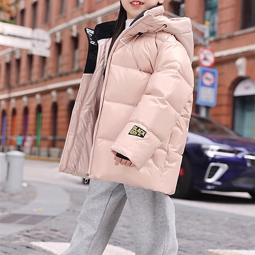 Bambini Unisex Giacca in piuma Giacca da esterno Giacca con Cappuccio Giacca Imbottita Capispalla Tinta unica Manica Lunga Tasca Impermeabile Tenere al caldo Antivento Cappotto All'aperto Quotidiano