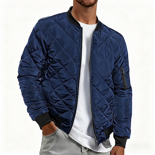 Per uomo Giacca bomber Giacca da lavoro Giacca sportiva Esterno Sport Antivento Caldo Inverno Tinta unita Militare Compatto Colletto alla coreana Standard Nero Verde militare Rosso Blu Cachi Giacca