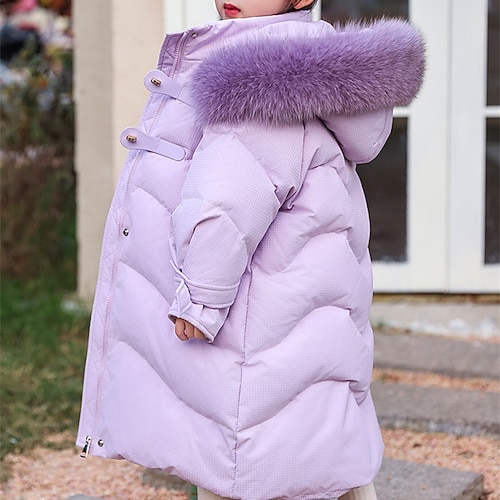 Bambini Ragazze Giacca in piuma Giacca Imbottita Tinta unica Sport Bordo in pelliccia Tasca Tenere al caldo Antivento All'aperto Cappotto Capispalla 4-12 Anni Inverno Nero Bianco Rosa