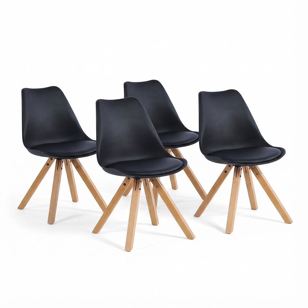 RATTATAN Set 4 Stühlen aus Polypropylen mit Holzbeinen und gepolstertem Kissen, minimalistisches Design, für Küche, Esszimmer, Bars, Restaurants SABINA/Schwarz