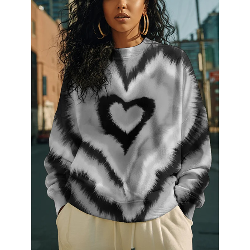 Women's Pullover Sweatshirt Heart Graphic Casual Long Sleeve Crew Neck Regular Tops Street Dailywear Casual Red Blue Orange Green Gray Fall Winter