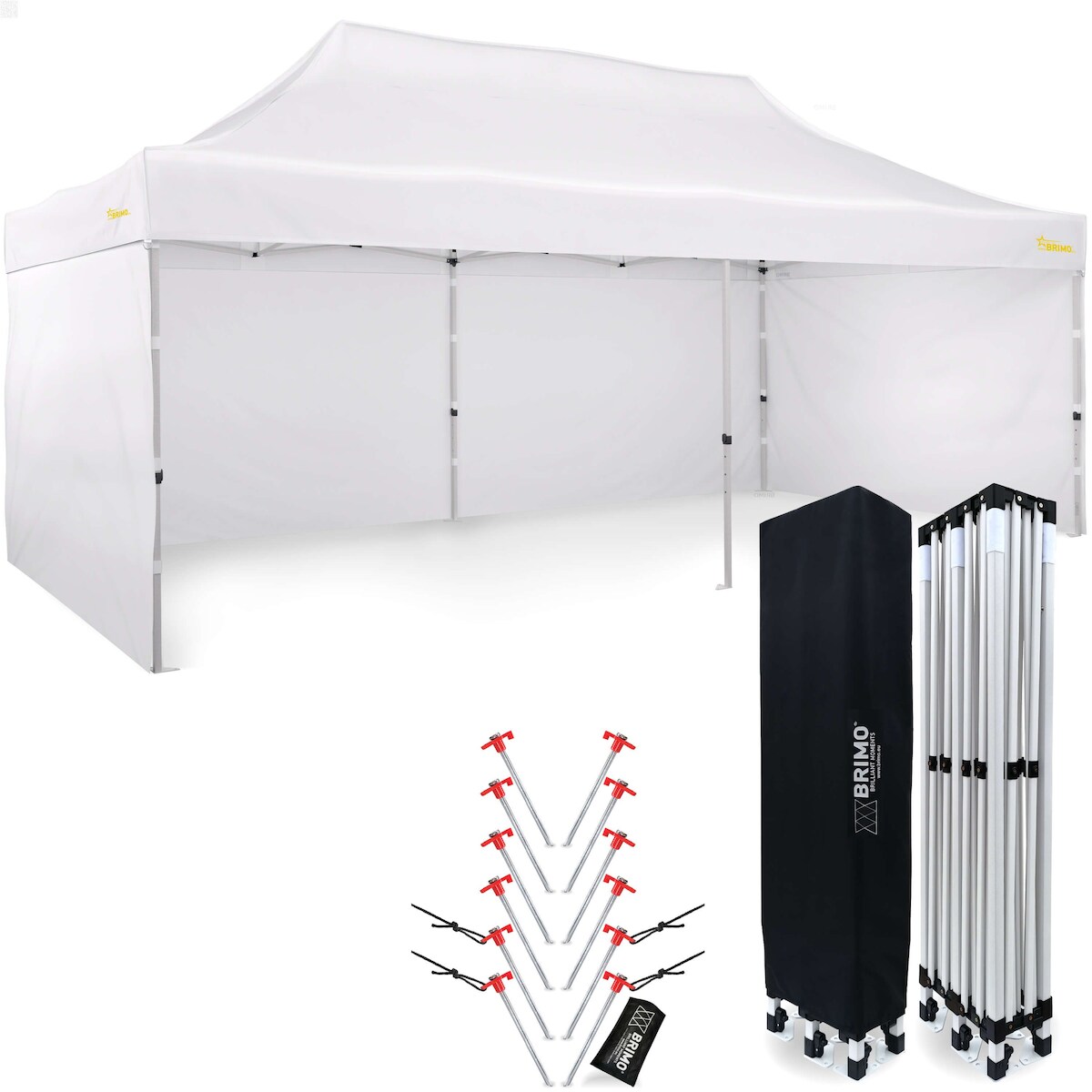 BRIMO Faltpavillons Messezelte 3x6 m - mit 3 Wänden - Weiß