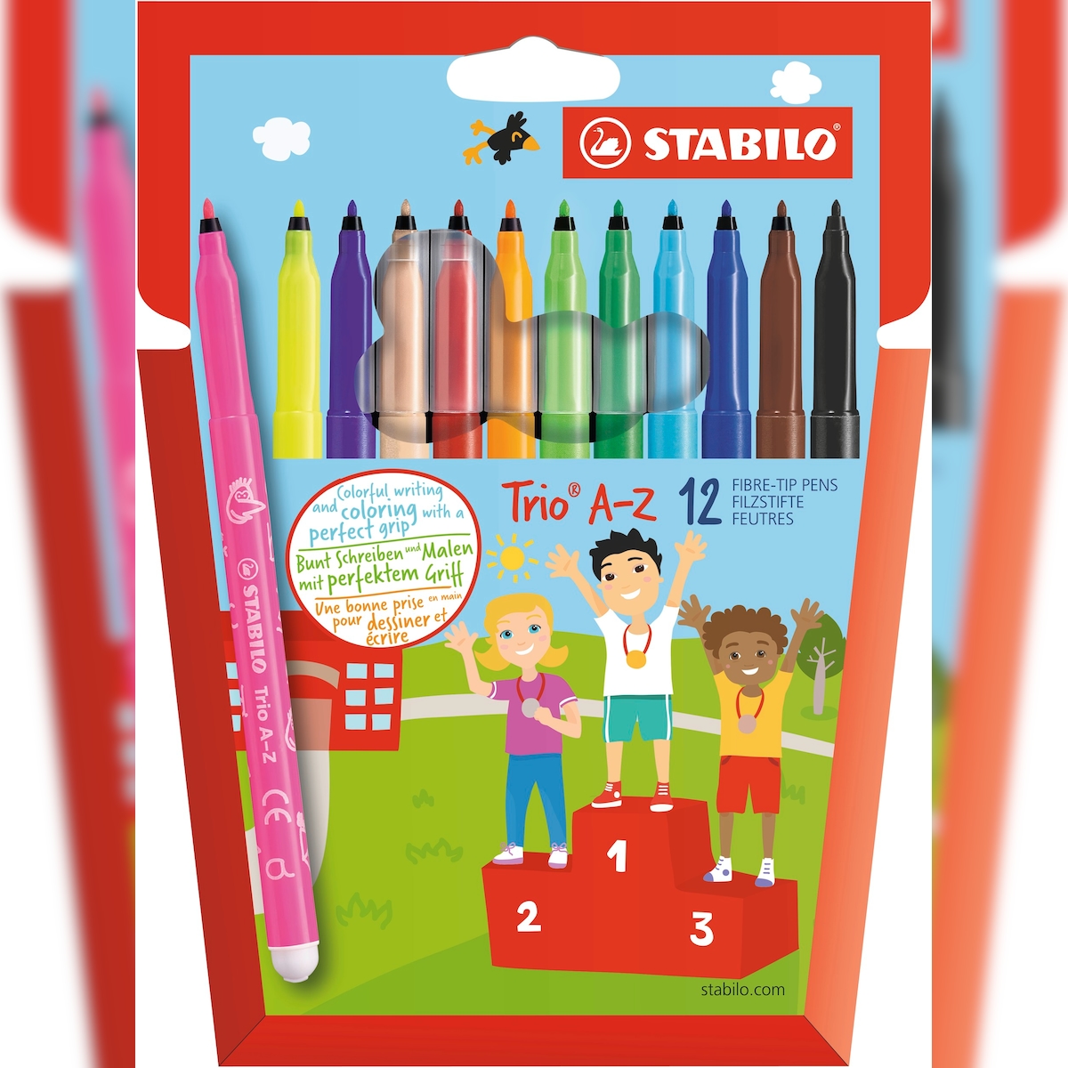Stabilo® 37811201 Filzstift mit Dreikant-Griffzone Trio® A-Z, Kartonetui mit 12 Farben