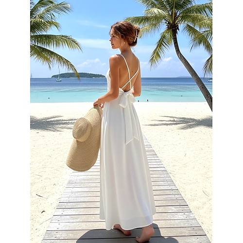 Per donna Abito maxi Abito Sottoveste Vestito all'americana Vacanza Casual All'aperto Uscire Vestibilità comoda Tinta unica Senza Maniche All'americana Bianco Estate Primavera