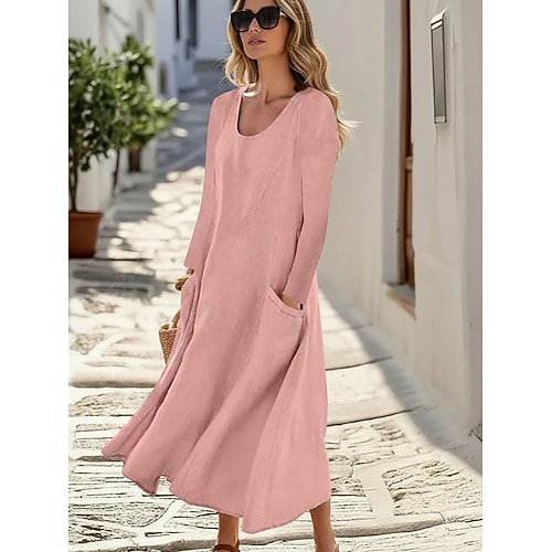 Per donna Abito Midi Misto cotone Abito a Tubino Abito in cotone Elegante Moda Moderno Quotidiano All'aperto Vacanza Vestibilità comoda Semplice Manica Lunga Girocollo Bianco Verde chiaro Rosa Azzurro