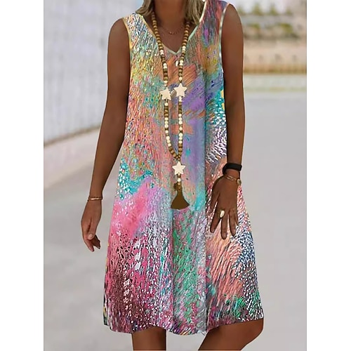 Per donna Abito al ginocchio Vestito Casual Elegante Moda Moderno All'aperto Vacanza Uscire Vestibilità comoda Semplice Senza Maniche Scollo a V Blu Rosa cipria Nero Giallo Estate Primavera