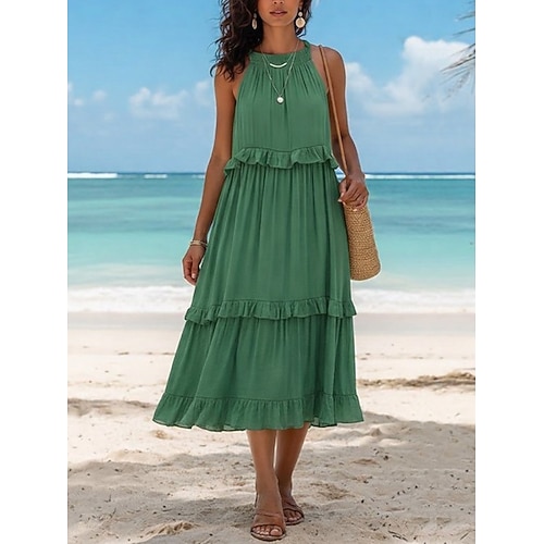 Per donna Abito maxi Abito a trapezio Abito Estivo Casual Quotidiano Vestibilità comoda Semplice Senza Maniche All'americana Verde militare Estate