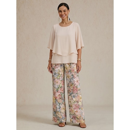Per donna Set di Pantaloni Manica Corta Mezza Manica A farfalla Girocollo Floreale Grafico Elegante Vacanza Casuale Quotidiano Vacanza Arancione Verde Beige Primavera Estate Vestibilità comoda