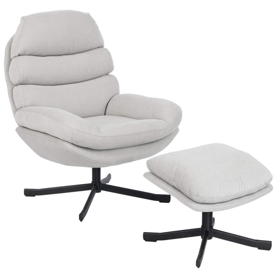 Chenille-nojatuoli rahilla – kermanvärinen, 360 astetta kääntyvä