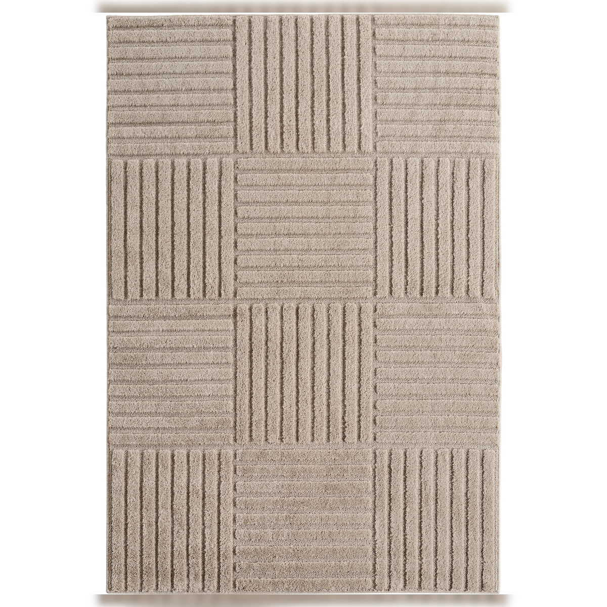 Carpetsale24 Wohnzimmer Teppich 280x370 cm Beige XXL Hochflor Skandi Boho Karo Design Hoch-Tief Effekt Weicher Flauschig Pflegeleicht für Schlafzimmer