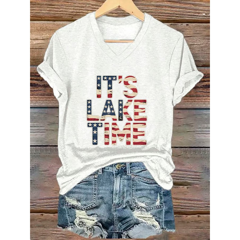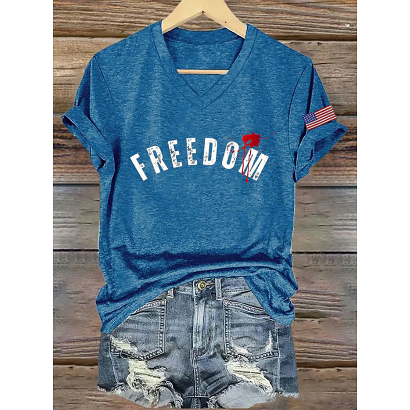 American Independence Day Women's T Shirt Graphic Letter American Flag Vintage Stylish Classic Short Sleeve Crew Neck V Neck Regular Tops Daily Weekend Print Blue Black White Red Summer Spring