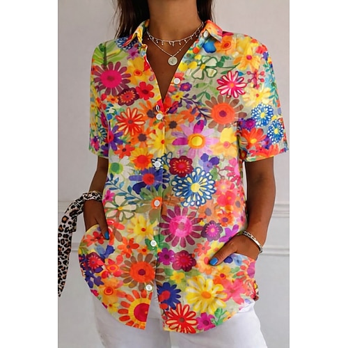 Per donna Camicia Camicia button-down Camicia casual Top estivi Bottoni Stampato Floreale Grafico Vintage Elegante Moderno Senza Maniche Manica Corta Colletto a Camicia Top Regolari Quotidiano Verde