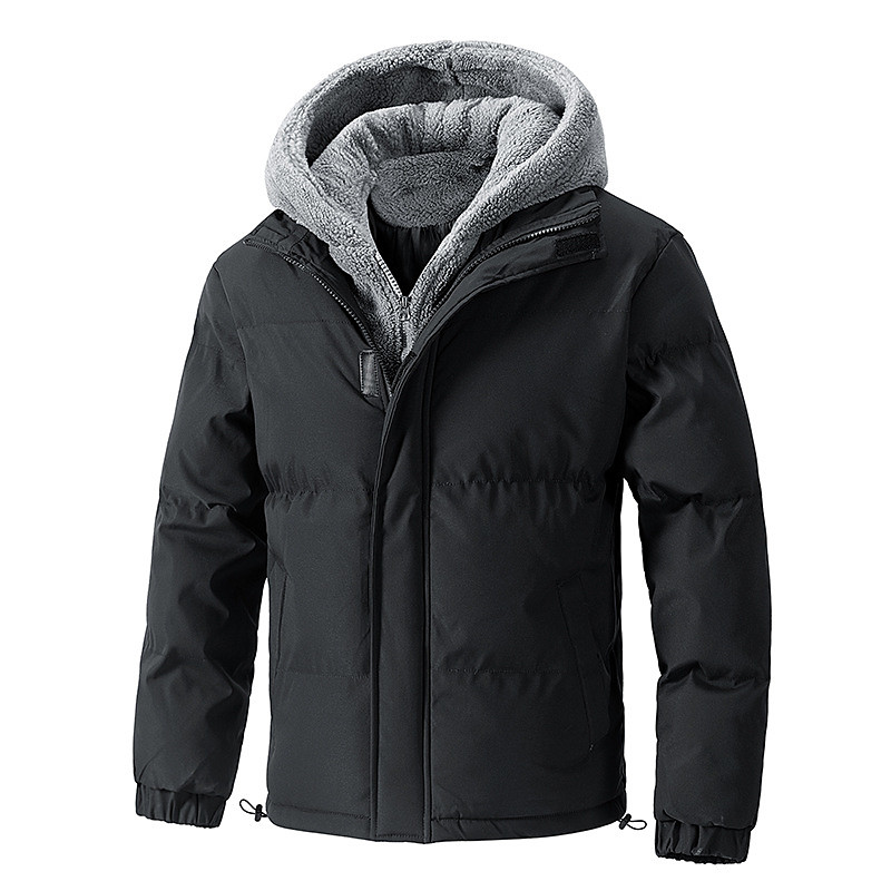 Men's Winter Jacket Puffer Jacket Fleece Jacket Padded 2 in 1 Fake two piece Polyster Hoodie Pocket Outdoor Date Casual Daily Regular Fashion Casual Thermal Warm Windproof Winter Plain Black Beige