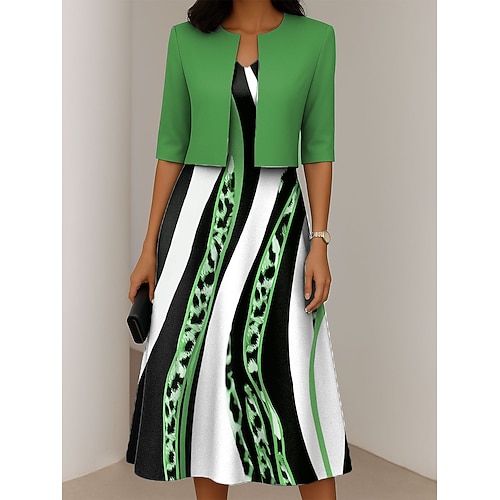 Set di abiti da donna a due pezzi abito midi con giacca abito elegante a linea maniche a ¾ festa semi formale stampa grafica floreale scollo a V invitata a matrimoni quotidiano blu viola verde