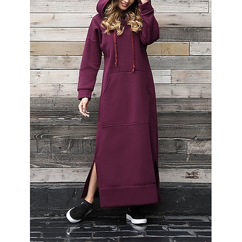 Per donna Abito Midi Abito a trapezio Abito aderente e svasato Casual Quotidiano Vestibilità comoda Semplice Manica Lunga Con Cappuccio Nero Vino Marrone Verde militare Autunno Inverno