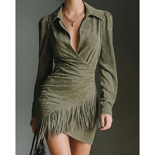 Per donna Mini Abito Tubino Abito Boho Elegante Vintage Moda Quotidiano Uscire Weekend Vestibilità regolare Semplice Manica Lunga Scollo a V Verde militare Primavera Autunno Inverno