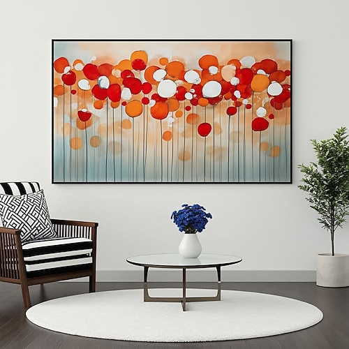 Abstraktes Ölgemälde aus der Mitte des Jahrhunderts, handgefertigte Wandkunst, rot-blau, Mid-Century Modern, Retro-abstrakte Mid-Century-Wandkunst, große Wandkunstdekoration, orangefarbene
