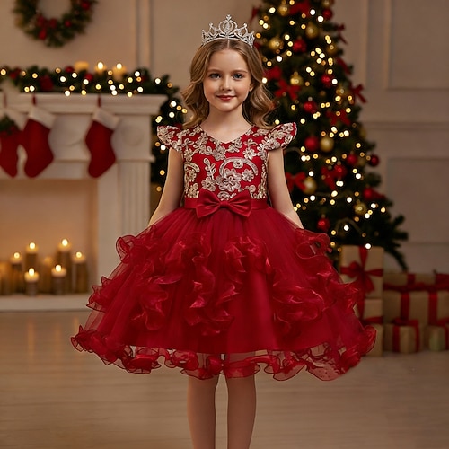 Blumenmädchenkleid Mädchen Formelle Kleidung Hochzeitskleidung Party Hochzeit Formell Mode Niedlich Prinzessin Patchwork Bestickt Blumen Ärmellos V-Ausschnitt Blau Champagner Ab 4 Jahren