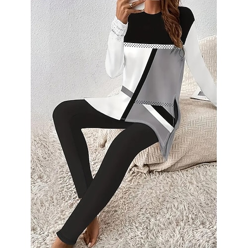 Per donna Elegante Vacanza Moda Set di Pantaloni Manica Lunga Girocollo Grafico Geometrico Stampato Casuale Quotidiano Casual Quotidiano Nero Verde Grigio Primavera Vestibilità regolare