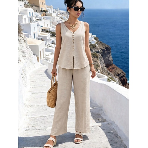 Per donna Set di Pantaloni Senza Maniche Scollo a V Semplice Moda Streetwear Casuale Quotidiano All'aperto Nero Giallo Blu Estate Vestibilità comoda