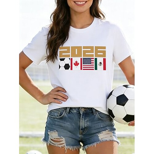Per donna Maglietta Stampato Grafico Lettera Squadra di calcio Elegante Classico Casual Manica Corta Girocollo Top Regolari Casuale Quotidiano Blu Nero Bianco Rosso Estate Primavera