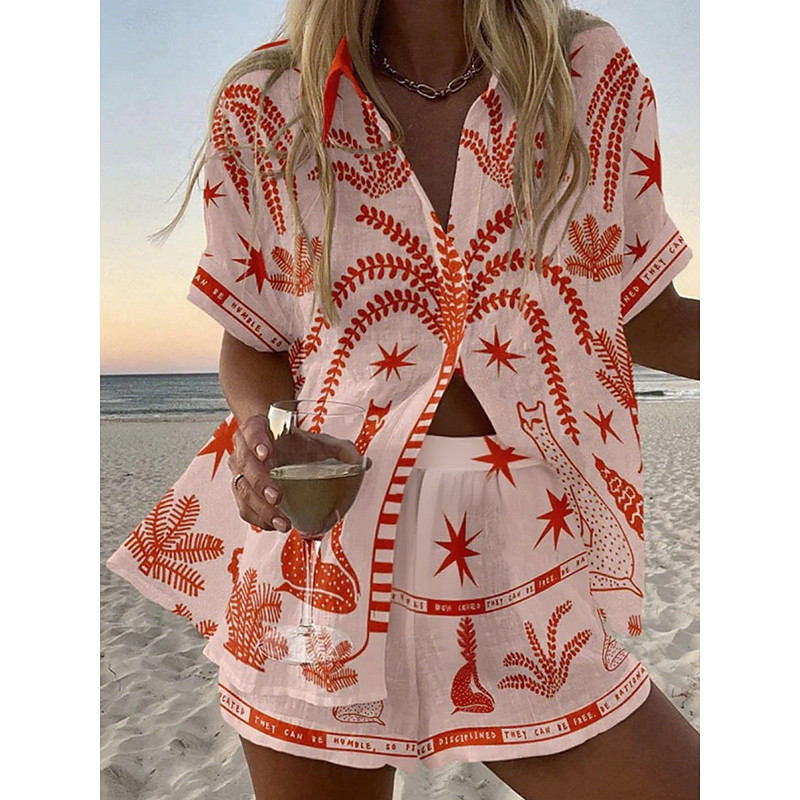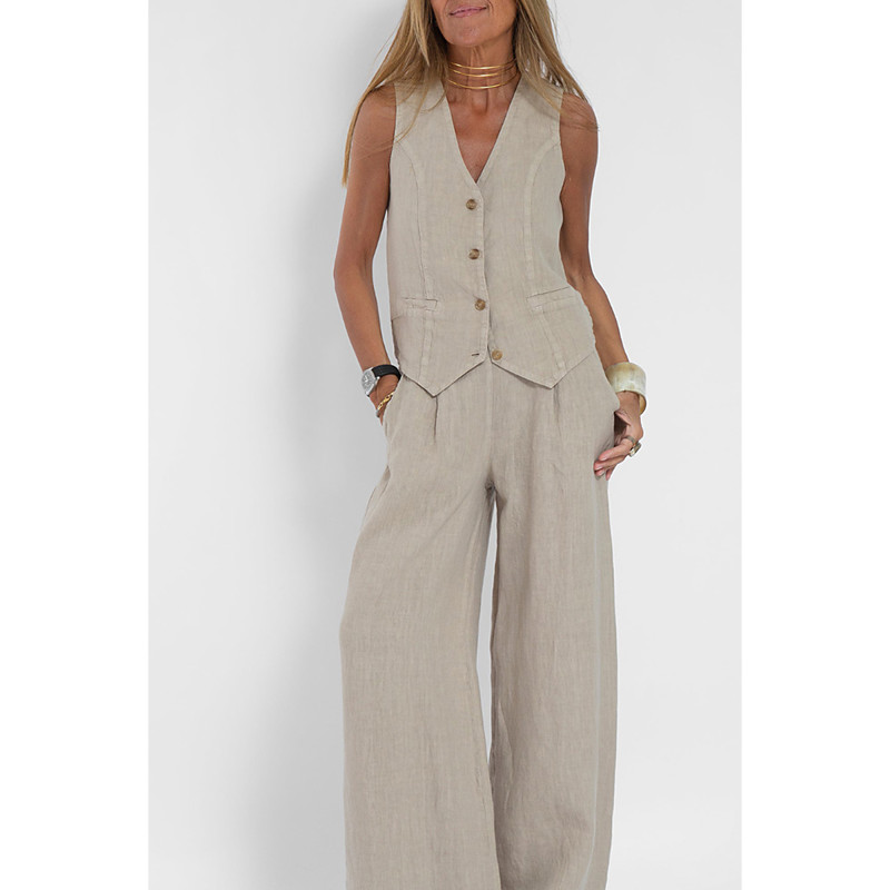 Women's Fashion Streetwear Daily Shirt Linen-Inspired Sets Two Piece Sets Wide Leg Pants Long Sleeve Shirt Collar Plain Casual Daily White Pink Army Green Summer Regular Fit