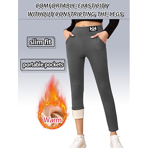 leggings a vita alta da donna autunnali e invernali con aggiunta di pile e leggings spessi, pantaloni caldi elastici per yoga