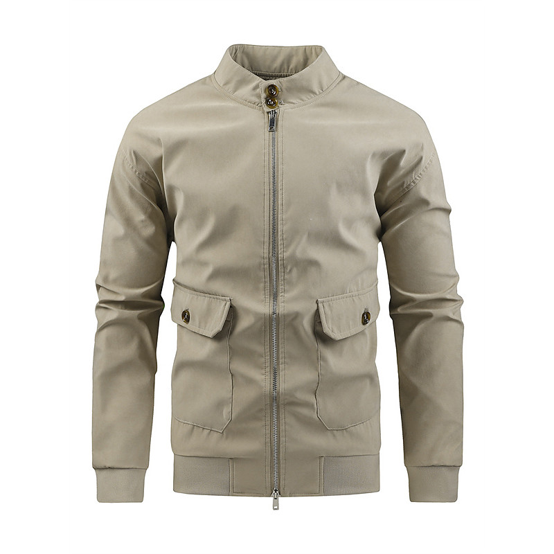 Men's Lightweight Jacket Cargo Jacket Casual Jacket Vacation Daily Windproof Pocket Fall Winter Plain Fashion Classic Stand Collar Regular Brown Khaki Jacket