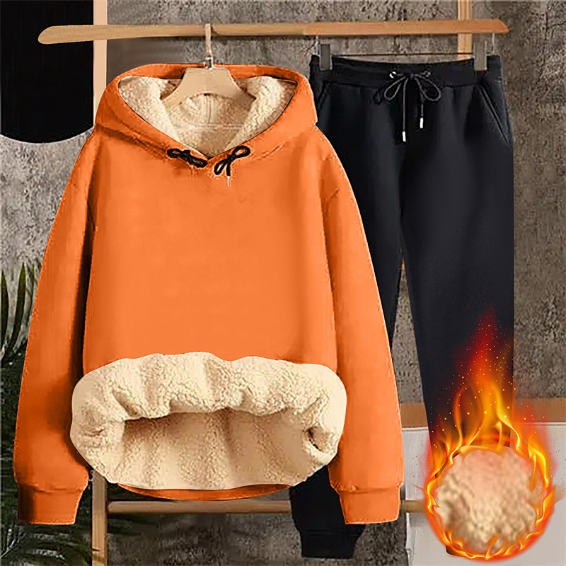 Men's Tracksuit Outfit Set Hoodies Set Hoodie Outdoor Daily Sports Drawstring Pocket Plain Black Orange Brown Polyester Fleece Activewear Fashion Streetwear Fall