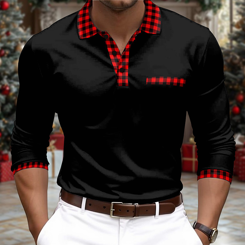 Kentucky Derby Men's Plaid Polo Shirts Golf Shirt Short Sleeve Polo Shirts Collared Shirts Business Casual WorkWear Formal Wear Festival Wear Buttons 3D Print Black White Wine
