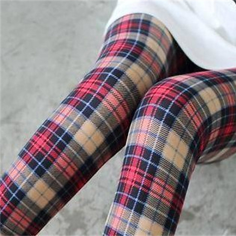 Women's Tights Leggings Cozy Leggings Streetwear Casual Full Length High Waist Plaid Elastic Waist Breathability Stretchy Vacation Street Daily Wear Magenta Dark red Wine Black Fall Regular Fit