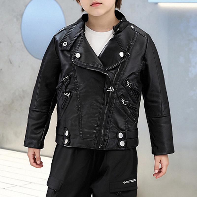 Kids Girls' Black Leather Jacket Jacket Solid Color Fashion Zipper Pocket Waterproof Windproof Outdoor Coat Outerwear 4-12 Years Fall Black Pink Red