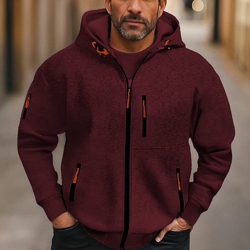 Per uomo Felpa con cappuccio Felpa con cappuccio a zip intera Felpa con cappuccio in pile Nero Vino Blu marino Blu Reale Verde scuro Con Cappuccio Semplice Tasca Sport Outdoor Quotidiano Ferie