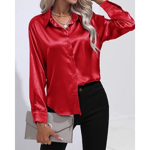 Per uomo Camicia Camicia in raso Camicia casual Camicia con Bottoni Camicie sbottonate Semplice Formale Quotidiano Nero Bianco Vino Blu reale Manica Lunga Bavero Primavera Autunno Tutte le stagioni