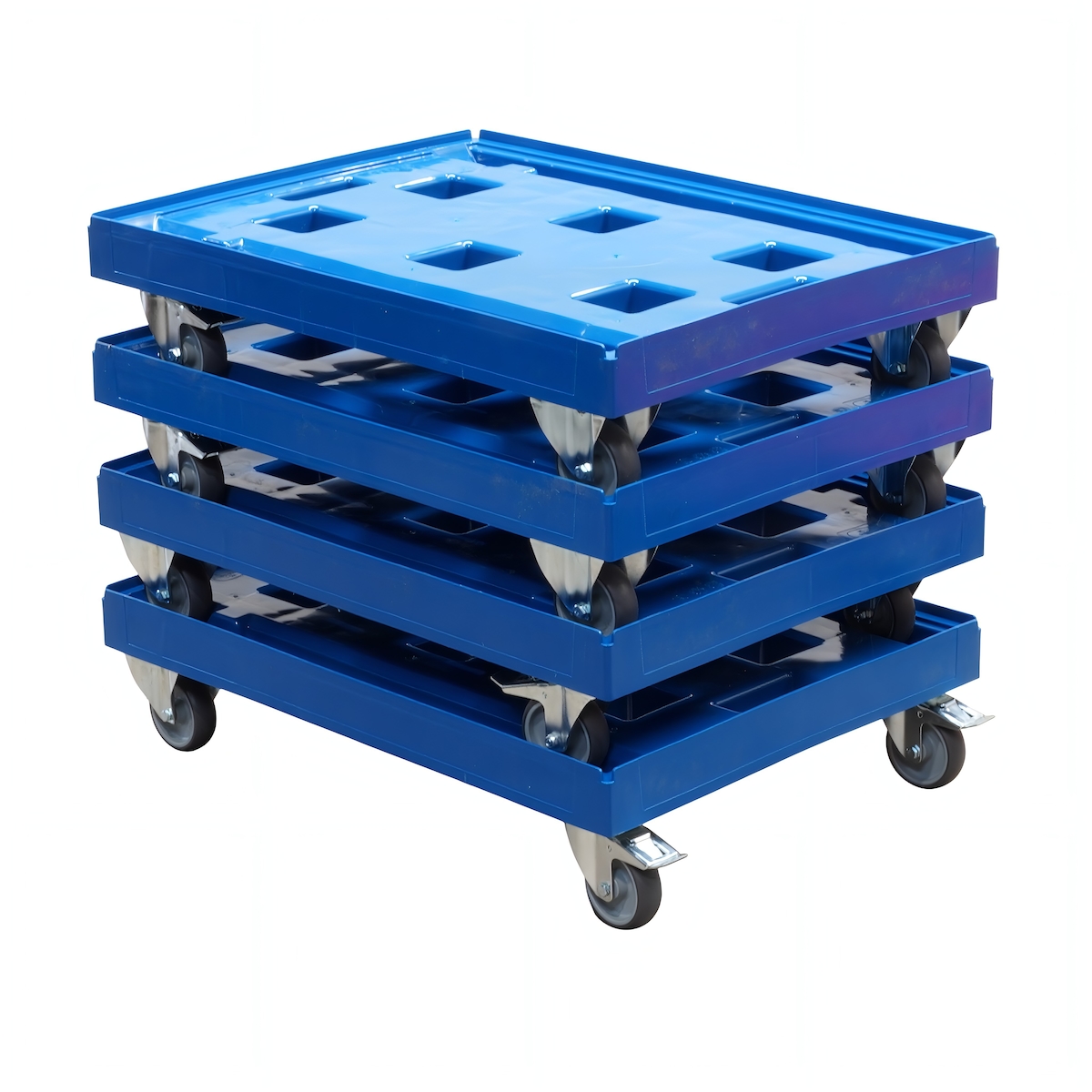 Logiplast 4 Stück Transportroller für Kisten 80 x 60 cm - 400 kg Traglast in Blau 2 Bock- und 2 Lenkrollen mit Feststellbremse