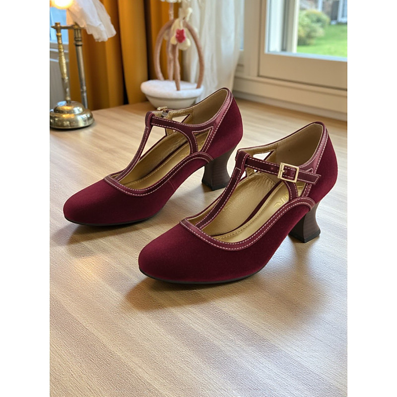 Women's Green T-Strap Mary Jane Heels, 1930s Edwardian Vintage Style Round Toe Mid-Heel Shoes for Retro Outfits, Formal Events and Gatsby Parties