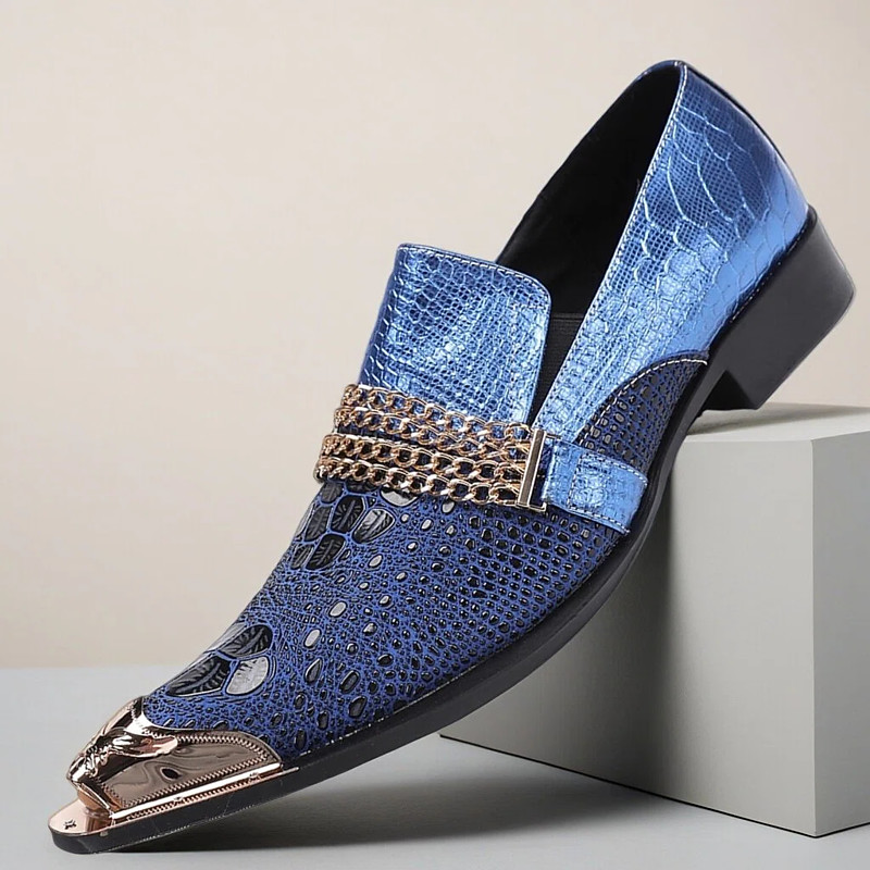 Men's Blue Snakeskin Loafers with Metal Toe Cap – Premium Formal Shoes for Special Occasions, Perfect for Luxury Events and Fashion-Forward Men