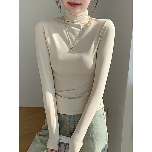 Per donna Blusa Tinta unica Elegante Casual Manica Lunga Dolcevita Top Regolari Quotidiano Nero Giallo Marrone Grigio scuro Albicocca Primavera Autunno Inverno