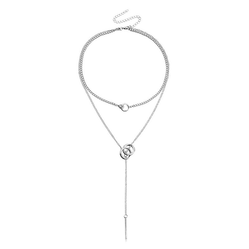 Layered Silver Chain Necklace with Circle and Bar Pendant, Minimalist Statement Jewelry for Women, Perfect for Parties, Dates, and Everyday Wear
