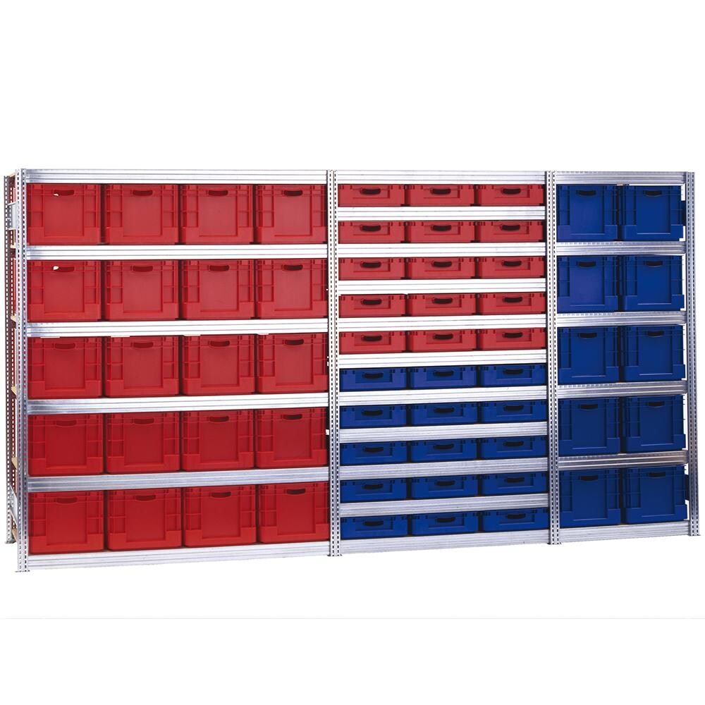 PROREGAL Eurokastenregal | Grundregal | HxBxT 207x87x60cm | 11 Ebenen | Fachlast 350kg | inkl. 20L Euronorm-Lagerbehälter | Verzinkt
