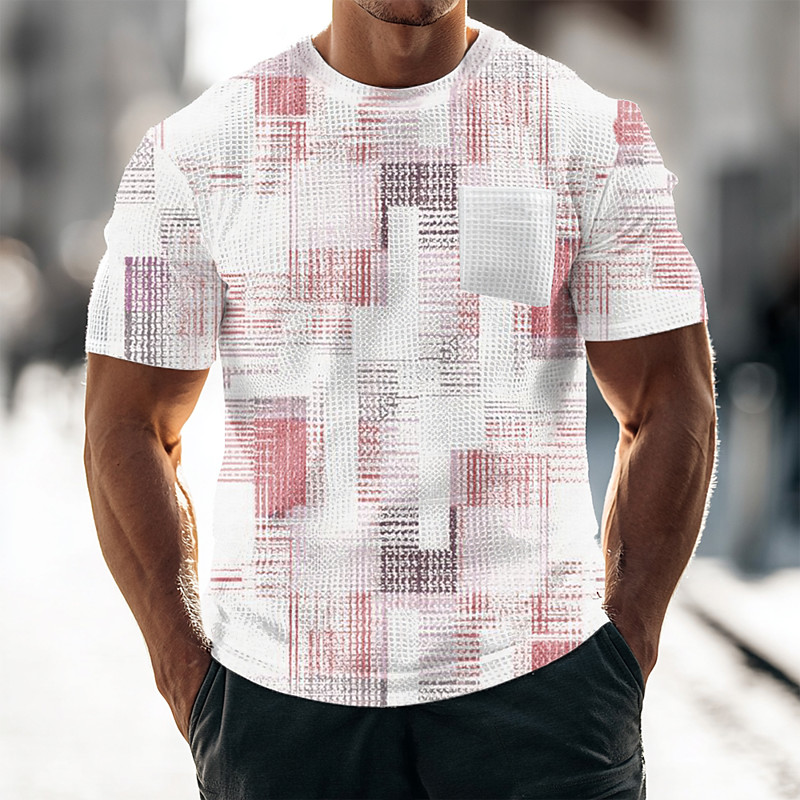 Men's Geometric Abstract Waffle Shirt Short Sleeve T shirt 3D Print Crew Neck Shirt Fashion Daily Designer Street Casual Daily Red Blue Green Summer Spring Clothing Apparel S M L XL XXL XXXL